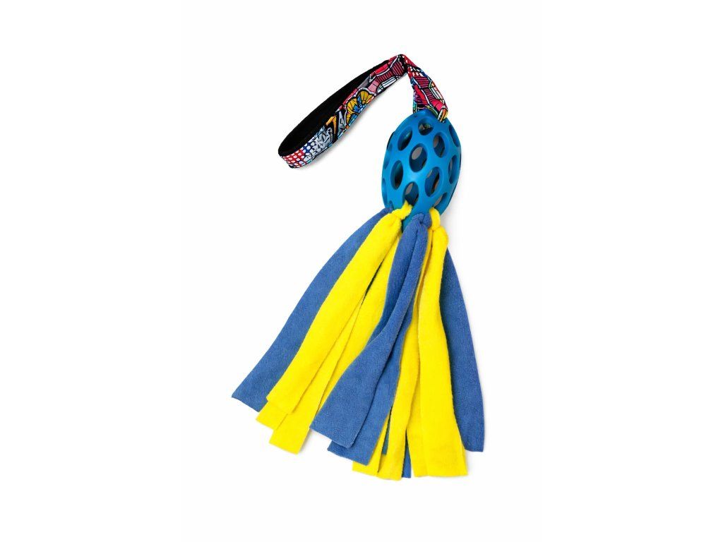 Hračka je vyrobená z JW Hol-EE fotbal děrovaný míč rugby medium z netoxického materiálu, pevného popruhu se softshellem, ručka je podšitá fleecem, střapec je z fleecu.